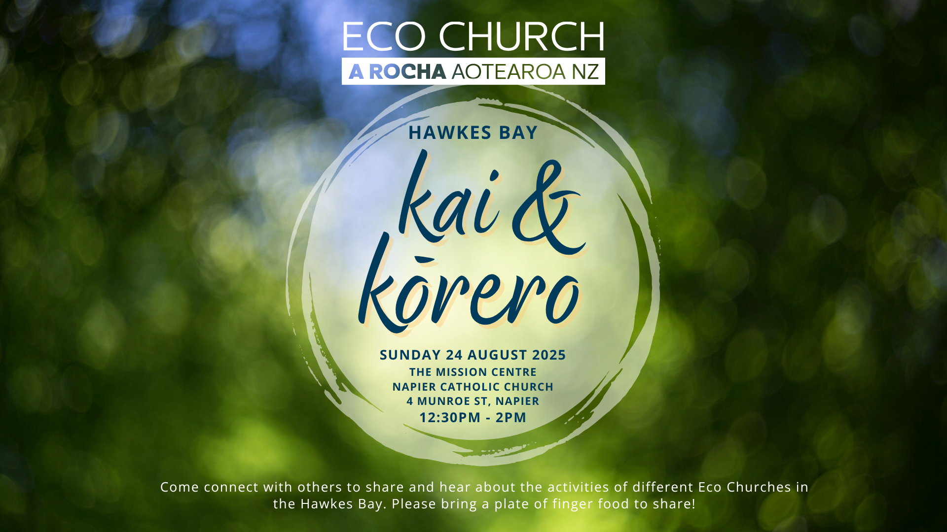 Come connect with others to share and hear about the activities of different Eco Churches in the Hawkes Bay. Please bring a plate of finger food to share!