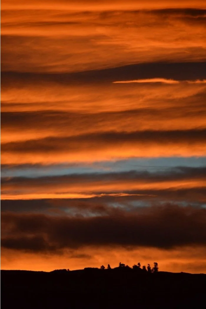 I go outside every morning and take a moment to be present - often, at Totara Valley, the morning sky is rich in texture and colour - I photograph it weekly. This picture captures something symbolic about The Holy Spirit. I like the blend of fire in the sky (tongues) and the land itself - these, our landscapes where heaven and earth meet.
